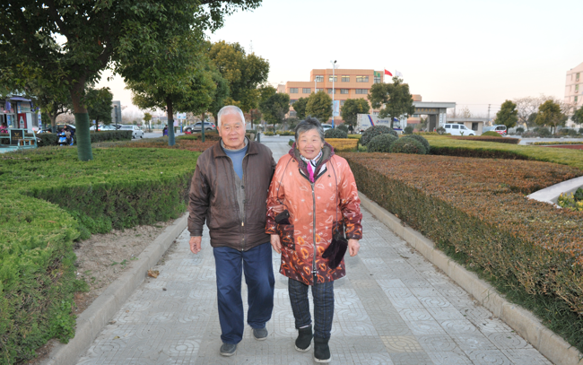 在淮海農場場部,提起結婚60多年來顧兆桃、顧懷英老倆口,農場的職工居民贊不絕口。熟悉他們的老職工說:他們以前工作兢兢業業兩人屢次登上先進典型榜單,堪稱黨員中的模范人物;退休后是關愛家庭的楷模相夫教子,把家庭經營得風生水起。”而農場的年輕人也顧爹顧奶對孩子,那真是全心全意沒得說!