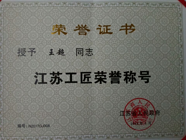 蘇舜公司王超同志榮獲江蘇工匠榮譽(yù)稱號