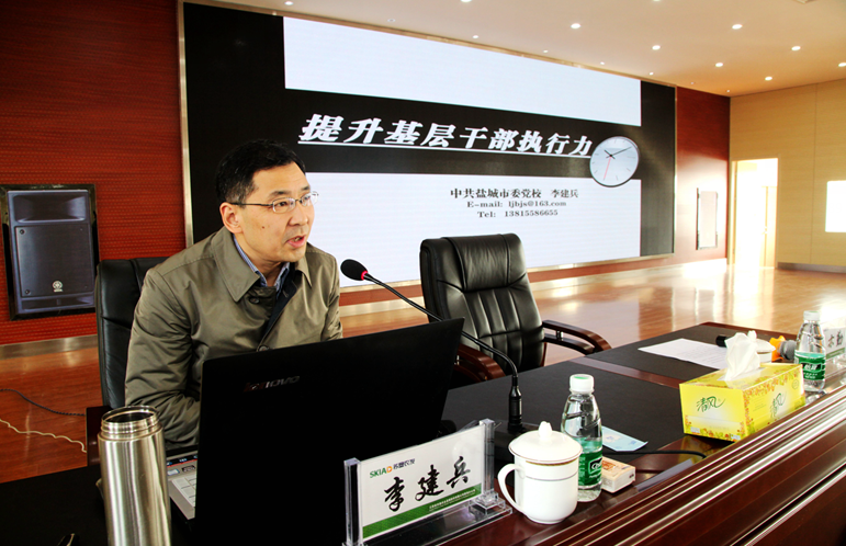 會議邀請了鹽城市委黨校黨委委員、教育長李建兵作《提升基層干部執(zhí)行力》的專題輔導(dǎo)。李教育長分別從樹立執(zhí)行意識、融入執(zhí)行團隊、構(gòu)建執(zhí)行流程、規(guī)范執(zhí)行程序四個方面,系統(tǒng)闡述了如何提升基層干部執(zhí)行力和提升執(zhí)行力的重要性。