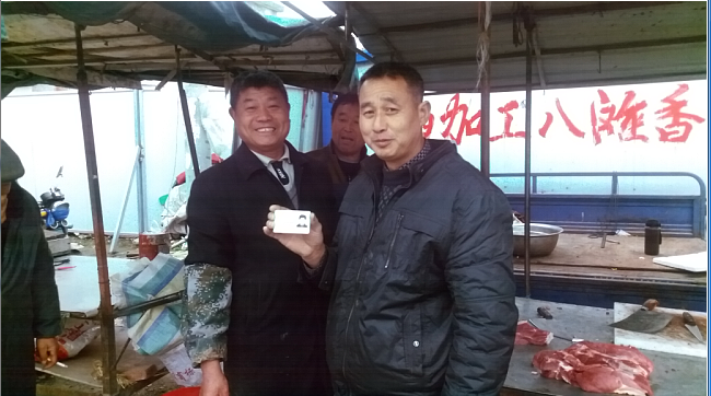這時(shí),徐加才已經(jīng)將油條燒餅裝在塑料袋里,欲往仇冬生的口袋里硬揣,仇冬生急忙將它退回。兩人一送一退,禮讓了好幾個(gè)回合。仇冬生看這樣推讓下去也不是個(gè)辦法,于是,他委婉地說(shuō):“您的情我領(lǐng)下了。不過(guò),我從小到大不喜歡吃油條、燒餅。這樣,我把您送給我的這份油條燒餅存您這里,您幫我出售,過(guò)幾天我到您這里來(lái)取‘錢(qián)’”。仇冬生一番詼諧幽默的語(yǔ)言,頓時(shí)將失主徐加才給逗樂(lè)了。徐加才對(duì)仇冬生說(shuō)的幽默話(huà)心領(lǐng)神會(huì),執(zhí)意要答謝仇冬生的念頭也打消了。圖為4月12日上午,仇冬生將拾到的身份證交還給失主徐加才。