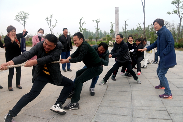 開賽前,戴學林作動員講話,拔河比賽是一項深受群眾喜愛的傳統體育項目,是展示團隊合作精神,體現團結一致,奮力拼搏,自我加壓,爭創勝利的體育項目,對于促進全民健身運動,推進精神文明建設,提高黨員干部隊伍的身體素質將起到較大的促進作用。希望參賽選手在比賽中相互學習、擴大交流、加強團結、增進友誼,賽出好心情、煉出好身體。同時希望要以這次拔河比賽為契機,把比賽中展現出來的勇于爭先的決心、克服困難的信心、頑強拼搏的作風、顧全大局的意識、團結協作的精神轉化為創新、創業、創造的實際行動。