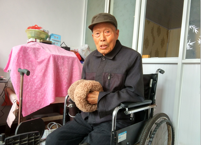 這名已經91歲高齡的老人名叫楊文才,是江蘇農墾淮海農場建國前的離休老干部,因為抗美援朝,195123歲的楊文才毅然報名參軍,后因戰局的扭轉,他從102師改編成農建四師,來到淮海農場屯墾戍邊。從1953年直到離休前,楊文才一直是單位的會計。現在坐著輪椅來到藤架下休息聊天是他每天的必修課。