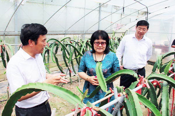 劉克英一行首先來到有機農莊,詳細了解了農產品質量管理體系建設情況,現場察看了有機農業生產情況及紅心火龍果采摘園的長勢,對有機櫻桃番茄、早春紅玉西瓜的口感贊不絕口,認為有機農莊在“兩西”高效農業上充分發揮出示范引領作用。在農場退伍軍人江海強牽頭成立的富源養殖合作社內,林下養殖的生態乳鴿、受市場歡迎的寵物狗養殖吸引了劉克英的目光,她與養殖戶親切交談,細致地了解乳鴿的飼料構成、市場銷售以及鴿糞處理等方面的情況,對小江開動腦筋鉆研市場取得的成就表示贊賞。農場西紅花種植戶臧新軍向劉克英介紹了?港農場職工居民發展西紅花種植的情況,西紅花合作社自成立以來已先后帶動66戶職工及周邊鄉鎮農戶種植畝均純效益達到3萬元以上,創江蘇墾區高效農業畝效益之最。
