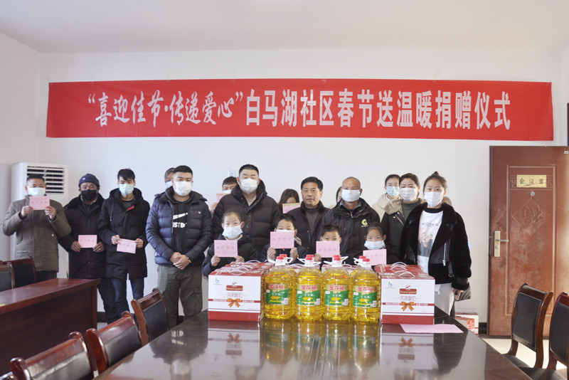 2月8日上午,江蘇皇崗集團有限公司副總經理胡萬紅帶領有關人員特意來到白馬湖農場裕源居委會,為韓春輝、韓得紅、王建林等十戶困難家庭送上了牛奶、食用油等慰問品以及各1千元的慰問金,并提前祝他們過一個溫馨祥和的春節。