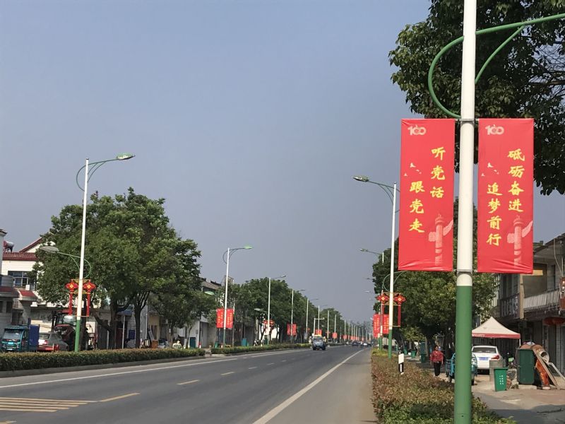 尤其是中國結景觀燈,主體材質為紅色吸塑,LED發光,單個高2.5米,寬1.3米,兩個一組,分別安裝在路燈桿兩側高4米的位置,照明和美觀效果兼備,確實讓人眼前一亮。而且中國結寓意深刻暗含了中國傳統厚重的吉祥文化,表達著熱烈濃郁的美好祝福,融入了中華民族對生命的認知,對生活的體驗,對未來的期許目前已安裝好的“中國結”和道旗及宣傳標語共近500組。這部分主干道上的燈桿換上“新裝”以后,白天,宣傳標語整齊喜慶、入腦入心,夜晚,中國結景觀燈和路燈交相輝映,營造了濃郁的喜慶氛圍,吸引了不少居民駐足拍照留念,得到了大家的一致好評。