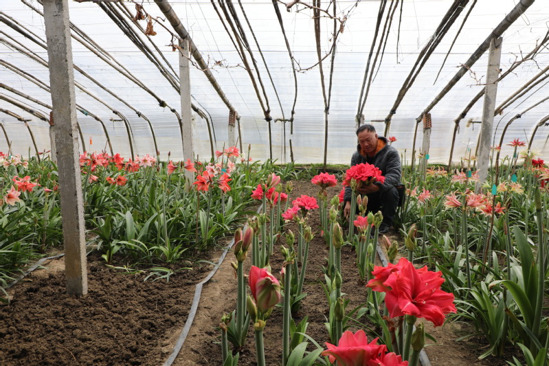 在種植培育朱頂紅種苗基礎上,銷售也是關鍵一步。目前,種球售價都在40-50元/粒,主要利用電商平臺線上、線下銷售,產品遠銷北京、上海、內蒙、四川、河南、河北、遼寧、山東等全國三十多個省市,鮮切花也打開了市場,5元/枝銷往蘇州、南京、上海等地,供不應求,做到不出門就接單、方便快捷。特別是近年疫情常態化的態勢下,電商平臺盡顯優勢。