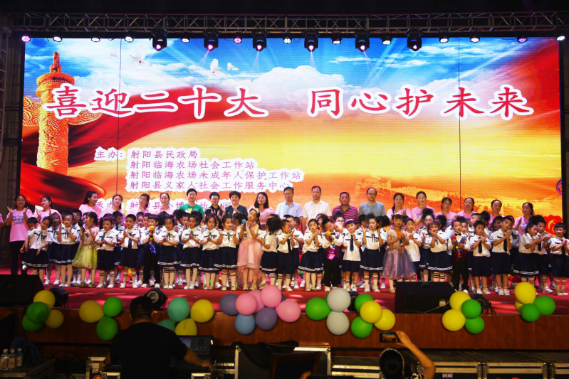 營造育人環境。為認真貫徹落實習近平總書記關于未成年人關愛保護工作的重要指示精神,聚焦保護未成年人身心健康,以實際行動迎接黨的二十大勝利召開,“喜迎二十大 同心護未來”文藝演出在農場黨群文化活動中心精彩上演,農場公司黨委領導與職工群眾一同觀看了農場小博士幼兒園師生的激情獻演。現場熱鬧非凡,掌聲交響。演出以舞蹈《陽光下的花朵》拉開了序幕,舞蹈《我不上你的當》,以情景表演的形式,為少年兒童進行了安全主題教育。舞蹈《你的答案》《我們一起向未來》《我們是祖國的花朵》……展現了少年兒童朝氣蓬勃、昂揚向上、緊跟黨走的精神風貌。