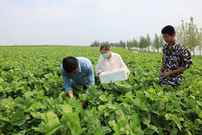 在店子村豆丹種植基地,黃豆己經長到1尺多高,一片綠油油的在風中搖擺,十分喜人。大家冒著32 的高溫,緊張忙碌著,上衣全濕了,富民科技園技術人員現場示范,教他們如何把豆丹蟲卵投放到黃豆。據富民科技園主任包明建介紹:豆丹蟲卵投放也是技術活,要選擇嫩綠無病害的中下部豆葉,把豆丹蟲卵包好,然后用訂書機訂好,這樣可以避免豆丹蟲卵受到太陽暴曬。現在的季節正是露天養殖豆丹投放蟲卵的大好時機,豆丹蟲卵在這樣的溫度下,3天左右就會孵化,1顆黃豆可以夠2條豆丹一生的生長食用。正常情況下,22天就可以上市銷售了,豆丹銷售完以后,還可收一季黃豆,收益十分可觀。