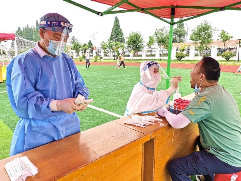 把廣場當戰場,在團結協作中恪盡職守。早晨五點半,居民們陸續趕來參加核酸檢測。只見徐加云一身藍色防護服,頭戴隔離面罩,手著橡膠手套,行色匆匆地忙碌在服務一線。指導掃碼、測量體溫、維持兩米線……看到需要引導的居民,他主動上前做起引導員;遇到腿腳不靈便的老人,他連忙攙扶做起志愿者;碰到哪個點位需要人手,他自愿加入做起服務員。溫度迅速攀升,衣服早已干了又濕,他卻毫不在意。拿起消毒噴壺,他仔細地為采樣臺、醫用垃圾箱、人員等候區等處消毒。為縮短居民等待時間,加快采樣速度,他提前為醫護人員準備好核酸檢測咽拭子棉簽?!拔沂怯游瘯ぷ魅藛T,這些都是我應該做的,更何況我還是一名共產黨員,全心全意為人民服務是我的職責。”當被問到辛不辛苦時,他笑著回答道。歷時三小時十分鐘,迎湖廣場檢測點完成樣本采集1080份。核酸檢測高效率的背后,是徐加云的點滴付出,也是一個個共產黨員團結協作的結果。