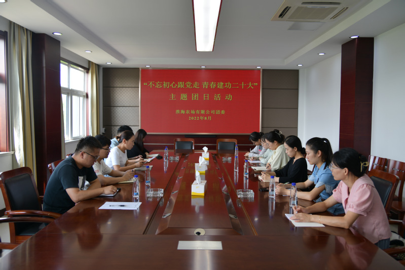 淮海農場公司團委將 通過主題團日活動、主題團課、形式新穎的線上線下活動,多措并舉推進不忘初心跟黨走青春建功二十大主題教育活動走深走實,團結引領廣大淮海團員青年堅定跟黨走、建功新時代,以實際行動迎接黨的二十大勝利召開。