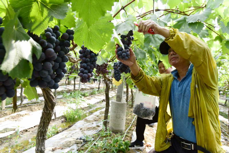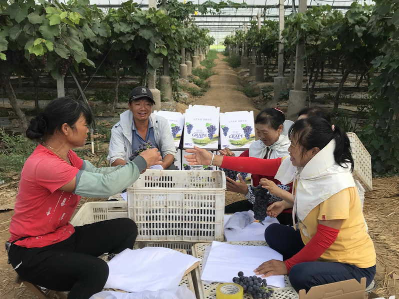 據(jù)了解,園內(nèi)種植品種“夏黑”和“陽(yáng)光玫瑰”等葡萄品種,畝產(chǎn)量達(dá)4000上下特別是統(tǒng)一施用農(nóng)家肥、無(wú)公害防蟲防病、反光膜覆蓋、科學(xué)滴灌、疏果等措施,輔助于智能化的通風(fēng)調(diào)溫、噴淋調(diào)水和調(diào)節(jié)光照設(shè)施的開(kāi)展,合理調(diào)節(jié)土壤水分,降低田間溫、濕度,也減輕各類病蟲害的侵襲,讓葡萄按規(guī)定設(shè)計(jì)的要求進(jìn)行掛果,確保種出安全、優(yōu)質(zhì)的葡萄提供給消費(fèi)者。