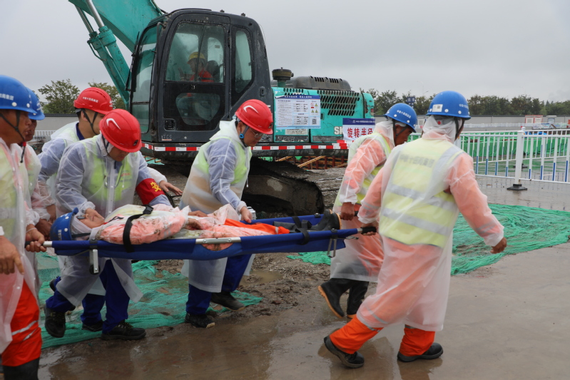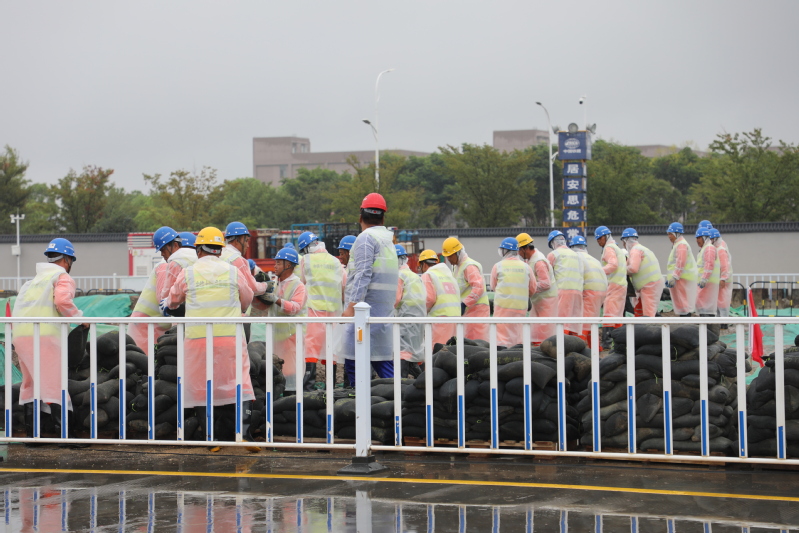 為進(jìn)一步樹牢安全發(fā)展理念、壓實(shí)安全生產(chǎn)責(zé)任、防范化解重大風(fēng)險(xiǎn)、提升干部職工應(yīng)急處置能力,8月29日,江心沙攜手中鐵十四局海太長江隧道工程項(xiàng)目部開展防臺(tái)防汛綜合應(yīng)急演練。圖為筑堤防洪、醫(yī)療救助、緊急撤離等演練場(chǎng)景。
