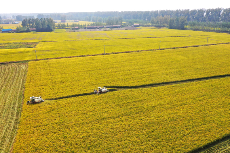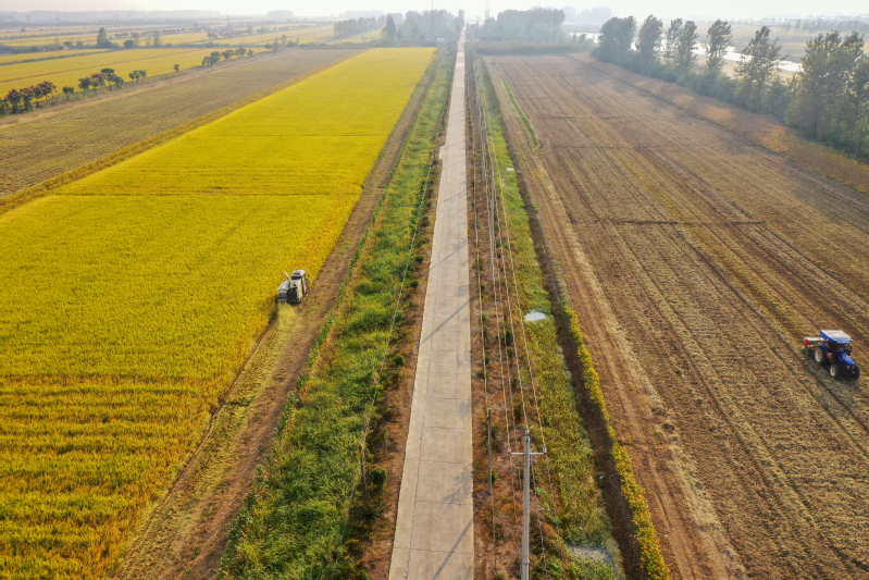 金秋十月,豐收季節。高空俯瞰寶應湖農場,田間地頭,收割機來回穿梭,曬糧場,稻谷飄香,處處呈現如畫般的豐收美景。水稻收割完之后,旋耕機、播種機隨即“登場”,將一粒粒麥種播撒進田間,為來年豐收打下基礎。