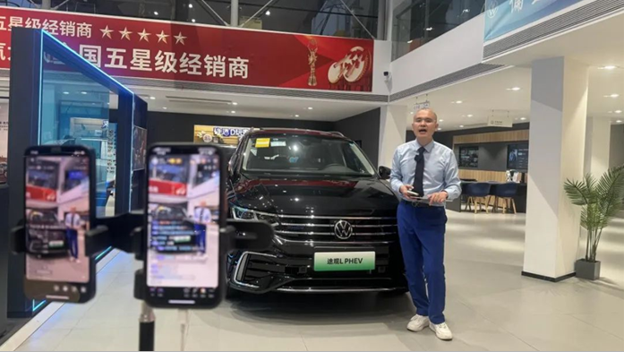 “不是任何人都適合面對鏡頭,所有銷售顧問必須輪播上崗,通過全員直播選拔優秀主播人員和銷售支持?!笔袌鰧n}會議上,蘇舜對直播營銷的人員架構和主播的選拔提出了明確要求。蘇舜年輕人居多,他們不僅充滿活力,而且對新鮮事物感興趣,公司從中挑選出形象好、口才出眾、專業能力強等方面均較為優異的員工,經過培訓后組成主播團,輪流在網絡上展示自我,試播通過后再擇優確定最終人選,讓員工既下得了車間,還上得了直播間。目前,公司11家4S店直播營銷團隊均為“1+1+3”的架構(即:1名專職主播、1名兼職主播和邀約專員、銷售顧問、服務顧問3名銷售支持人員),形成類似DCC的直播小組協同作戰,主播人員中既有企業一線員工,也有基層管理崗位人員。