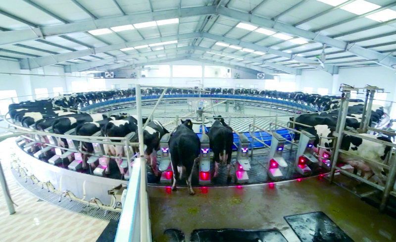 在首農畜牧平谷良種奶牛場,新質生產力帶來的智能化設備隨處可見。一頭頭經過基因檢測篩選出來的荷斯坦良種A2奶牛,在寬敞明亮的牛舍里悠閑地進食、散步、趴臥。立體風扇、噴淋器等智能系統可以隨時將牛舍環境控制在最舒適的狀態。自動刮糞板、智能牛體刷、智能分群門等智能化管理系統,為奶牛產出優質的原奶提供了優質保障。