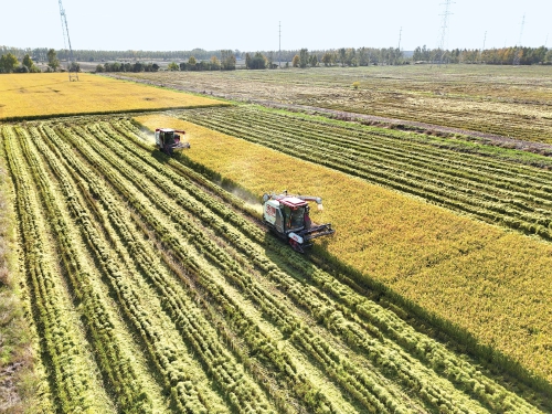 近日,在江蘇省連云港市海州區(qū)江蘇農(nóng)墾崗埠農(nóng)場的高標準農(nóng)田里,職工們利用晴好天氣,積極開展水稻搶收工作,確保不誤農(nóng)時、顆粒歸倉。  徐衛(wèi) 攝