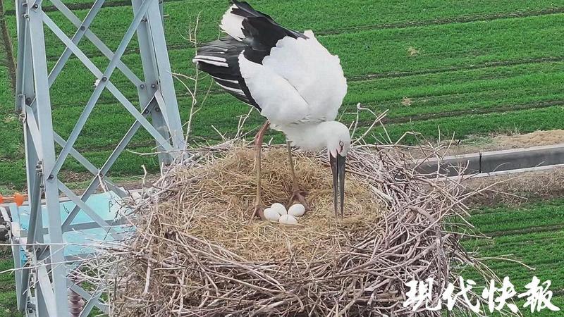 “發現鳥巢里已有兩枚蛋。”宋婧將拍攝的視頻給專業人士辨認,確認這兩只大鳥是國家一級保護野生動物東方白鸛。過了幾天,宋婧再次過來拍攝時,發現鳥巢里出現了四枚鳥蛋。