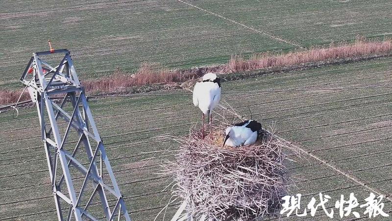 拍攝者宋婧告訴現代快報記者,2月13日中午,她利用中午休息時間,用無人機拍攝麥子的生長狀況時,發現五分場境內的一座高壓線鐵塔上,有大鳥正忙著搭建鳥巢,便立即取出隨身攜帶的無人機,在不驚擾鳥兒的情況下進行拍攝。