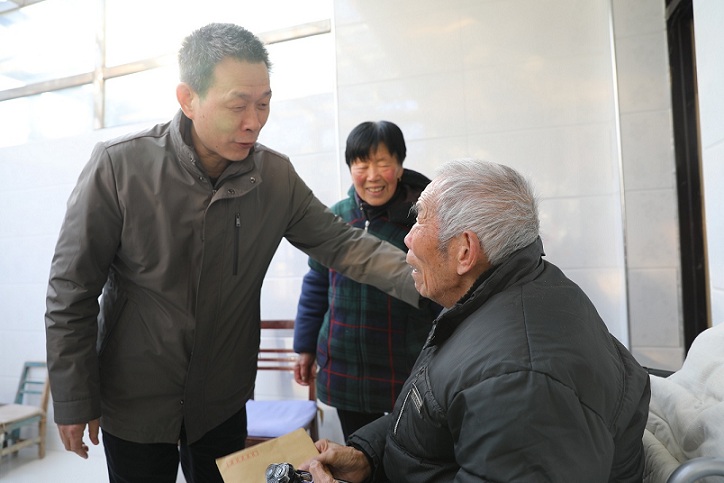 嚴寒冬日,暖意洋洋。在春節來臨之際,1月28日上午,集團公司總經理胡兆輝一行來到南通開展慰問活動,為困難職工送上農墾大家庭的關愛。蘇墾南通公司黨委書記嚴忠帶領班子成員陪同慰問。  胡兆