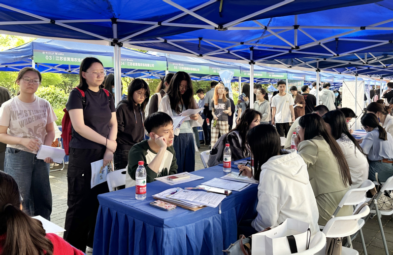 4月26日,集團公司在南京農業大學衛崗校區舉辦春季專場招聘會。集團公司黨委副書記朱浩現場指導招聘工作。集團公司共有17家單位參與本次招聘會,提供了包括財務管理、文秘、畜牧養殖、農業技術、農業管理、農產品營銷等多個方向的30個崗位。招聘會現場氣氛熱烈,吸引了400余名畢業生前來應聘。畢業生與現場工作人員就招聘崗位進行了深入交流,在集團公司就職的南京農業大學畢業生以學長的親切身份為大家提供了就業指引與建議。招聘會現場,集團公司領導與南京農業大學學生工作處、植物保護學院、動物科技學院負責人等座談交流。雙方表示,將進一步深化加強產學研合作,加快發展農業新質生產力,共同推進農業農村現代化建設。集團公司人力資源部、蘇墾農發以及各單位有關負責人參加招聘活動。