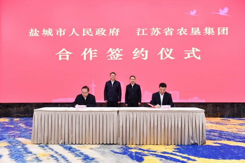 4月2日下午,集團公司與鹽城市簽訂合作框架協議。鹽城市委書記周斌,集團公司黨委書記、董事長吳本輝出席簽約儀式并致辭。鹽城市委副書記、市長張明康,集團公司黨委副書記、總經理姜建友代表雙方簽約。鹽城市委常委、秘書長薛盛堂、市委常委、副市長王連春,集團公司領導劉耀武、王立新和總經濟師朱亞東出席,鹽城市副市長王娟主持簽約儀式。周斌向江蘇農墾長期以來對鹽城經濟社會發展的關心支持表示感謝,并簡要介紹了鹽城的“三農”工作情況。他說,作為省內農業大市、產糧大市,鹽城糧食總產常年保持在140億斤以上,是長三角中心區農業總產值唯一超千億元的城市,為端牢“中國飯碗”展現出鹽城擔當。江蘇農墾是國有農業經濟的骨干和代表,是推進農業農村現代化的重要力量。鹽城與江蘇農墾歷史淵源深厚、產業高度契合、資源優勢互補,雙方有著良好的合作基礎,希望雙方以此次簽約為契機,按照省委部署要求,立足墾區和市域特點,進一步深化項目、機制等方面的創新合作,積極建設規模生產大基地,全面夯實糧食安全根基。積極互學互鑒,加強產學研合作,加快種業關鍵核心技術攻關,發揮產業鏈協同作用,打造一批特色鮮明的農業產業集群。大力培育農業新質生產力,提升農