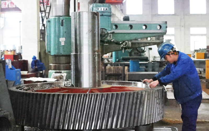 在金象傳動車間內(nèi),鉆工正全神貫注地檢測齒輪加工精度,確保每一個參數(shù)都達到高標準。他們對每一個環(huán)節(jié)的嚴格把控都凝聚著對品質(zhì)的追求,他們用精湛技藝和敬業(yè)精神,為機械傳動設(shè)備的高質(zhì)量生產(chǎn)保駕護航。