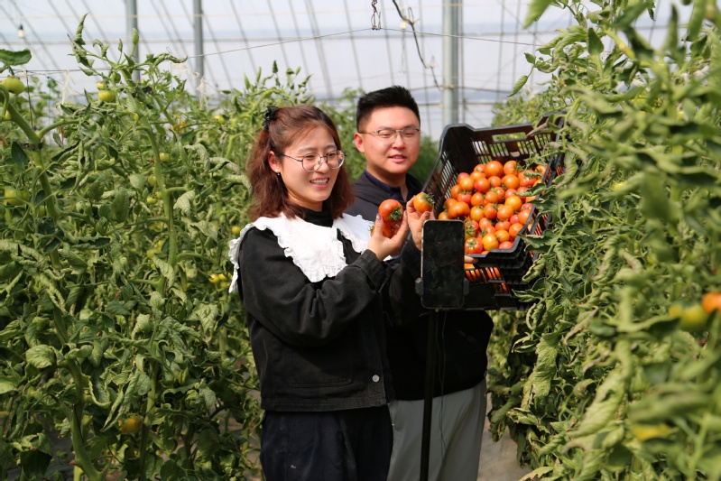 “歡迎大家進入崗埠農場高效農業示范園直播間,現在我們看到的是西紅柿種植現場。”近期,崗埠農場高效農業示范園將線上直播間開進西紅柿種植基地,主播們現場采摘展示新鮮的水果西紅柿,通過線上商城及線下引流的方式,助力崗埠農產品銷售。