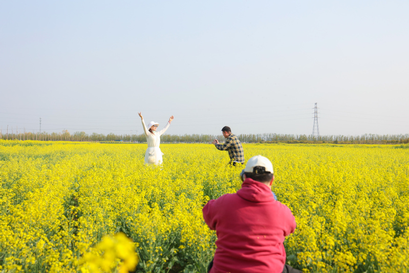 近日,在云臺農場云水灣濕地公園,百畝油菜花競相綻放,園區以花為媒,開展主題為“金色花海·樂享云水”的賞花活動,吸引了大批游客游玩。