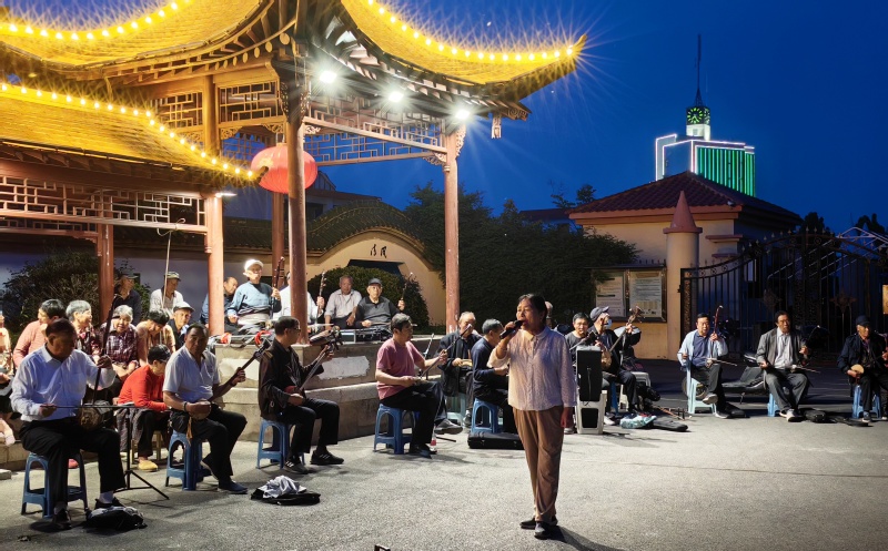 盛夏的東辛農場,每到晴天晚上,文化廣場便成了居民納涼的好去處。社區搭臺,“民星”唱戲,獨奏、合奏,淮海戲,流行樂,輪番上場,演繹出一場場多姿多彩的文化視聽盛宴。