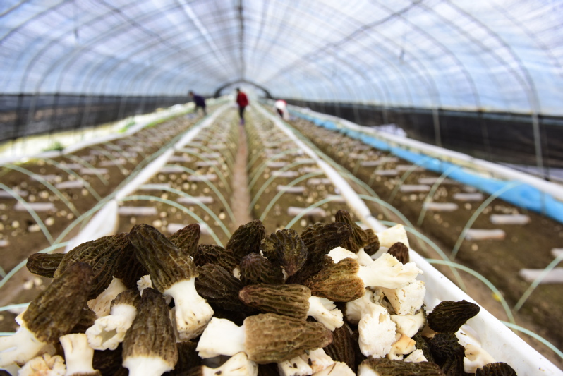 4月9日上午,淮海農(nóng)場公司食用菌種植基地大棚內(nèi),員工們正在采收羊肚菌。近年來,淮海農(nóng)場公司嘗試發(fā)展羊肚菌、赤松茸等食用菌菇產(chǎn)業(yè),通過做強做大做出特色,嘗試新的區(qū)域經(jīng)濟發(fā)展的亮點。