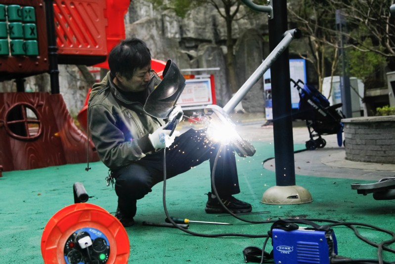 為了增強業(yè)主參與健身鍛煉的積極性,保證業(yè)主的健身安全,通宇公司旗下林景物業(yè)常態(tài)化開展健身器材的日常養(yǎng)護和專業(yè)維護,及時消除公共安全隱患,打通全民健身“最后一公里”。圖為林景雅園物業(yè)服務(wù)中心李師傅正在維修園區(qū)內(nèi)的健身器材。