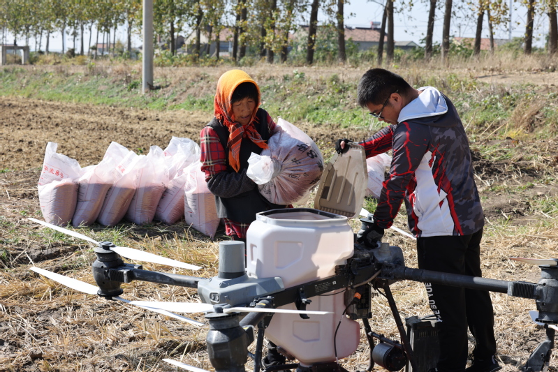 今年“三秋”工作中,蘇墾農發復興圩分公司積極推廣和應用新型農機具,利用無人機“飛播”的方式助力秋播生產,為秋季農業生產插上科技的“翅膀”,全力打好“三秋”生產下半場。近日,在復興圩分公司農業生產三大隊7號地里,操作人員配合無人機手熟練地將小麥種子倒入無人機播撒箱內,一臺裝有導航系統的大疆T50無人機緩緩升空,按照設定的路線勻速飛行,小麥種子隨著高速氣流噴灑而出,均勻地播撒在土地里。“我們這幾天撒肥、播種,全部使用無人機作業,一臺無人機每天可作業面積接近400畝,與傳統反旋播種作業方式相比,無人機播種不僅省時省力,還能夠精確控制每畝田的用種量,大幅度提高農業生產效率。”三大隊負責人夏繼全介紹說道。在今年的“三秋”工作中,復興圩進一步解放思想,勇于實踐,積極推廣應用一批新型農機具,有效提高了“三秋”各類生產作業質量。科技是現代農業生產高質量發展的重要支撐,為保質保量完成小麥播種工作,實現“提質量、促增收”的目標,復興圩分公司及早謀劃,嚴把小麥播種質量關,積極推廣無人機“飛播”技術,搶抓農時及時播種,用現代農業科技促進糧食穩產增產,守護“糧食安全”。