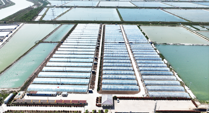 東辛農場水產養殖公司加強對蝦育苗基地建設,1-10月份共繁育蝦苗11.2億尾,不僅滿足了場內養殖需求,而且外銷5.78億尾。圖為育苗基地外景。