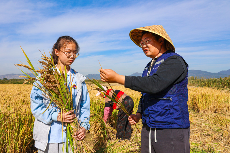10月28日,連云港外國語學校勞動實踐拓展活動走進云水灣濕地公園,近千名學生走進田野間,體驗秋收,聽農技人員講述關于水稻的故事,收割水稻、打稻谷,感受勞動的快樂。