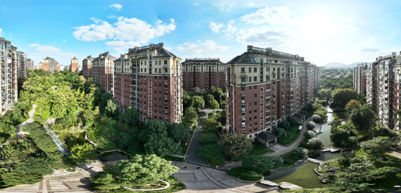 通宇地產始終堅持可持續發展道路,多措并舉積極探索“綠色、節能、智慧”的產品開發路徑。肩負“綠色使命”,確保項目設計與自然環境相協調,不斷提升地產項目綠化顏值、綠化品味和景觀質量,充分利用自然資源,打造現代園林式小區。圖為被綠樹環繞的林景雅園航拍照。