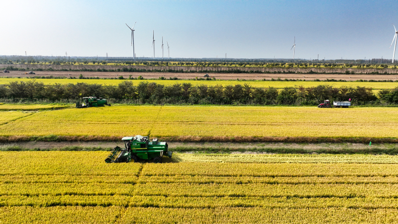 10月16日下午 ,蘇墾農發三河分公司全面拉開2023年“三秋”工作序幕,一臺臺收割機、運輸機來回穿梭在稻田間,繪就了一幅幅美麗的豐收盛景圖。
