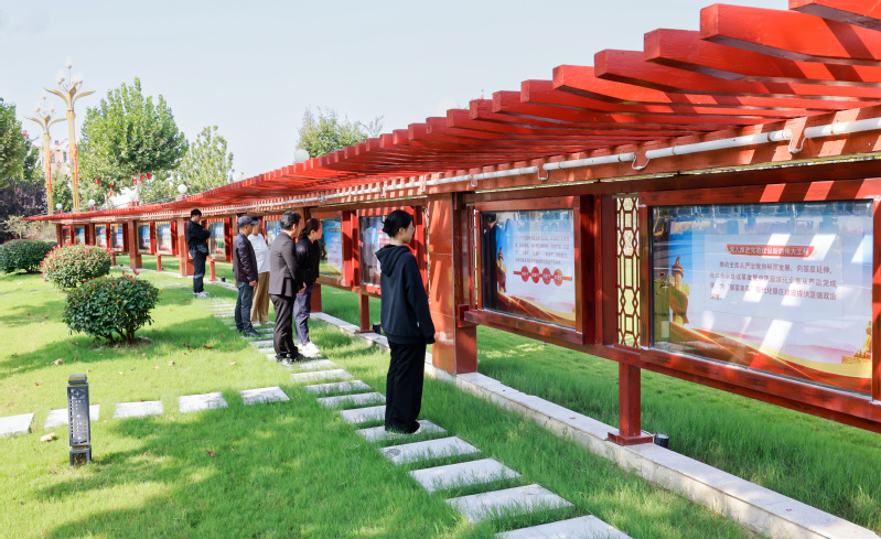 在集團公司第二次黨代會勝利召開之際,新洋農場公司在黨建文化廣場,更新了深入學習貫徹集團公司第二次黨代會精神專題文化宣傳長廊,推動集團公司第二次黨代會精神學習入腦入心。秋高氣爽,新更新的文化長廊成為廣場一道靚麗風景線,一組組新穎奪目的版面、一張張圖片、一段段激發奮進的文字,吸引了廣大干部群眾駐足觀看,大家頌黨恩、記使命、話未來,久久不愿離去。