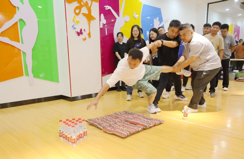 為了增強團隊凝聚力,新曹組織青年員工參加團建活動,現場游戲精彩紛呈。圖為大家在玩“群龍取水”游戲。