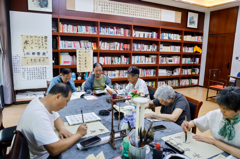 近日,新洋農場居家養老服務中心新時代實踐站的書法活動室里,坐滿了書法愛好者。授課老師朱玉兵右手拿起一支毛筆,從最基本的橫豎點撇捺開始,邊示范邊講解字的結構和筆法的原理,只見他揮毫潑墨,一行飄逸靈秀又不失剛勁的字呈現在紙上。學員們圍著老師認真觀摩、一起提筆練習,現場氛圍十分熱烈。“居家養老服務中心的公益課堂對我們退休職工來說是一個非常不錯的活動平臺,我們平時在家里比較空閑,到這來學習不僅能提高書法技藝,還能修身養性、結交志同道合的朋友,真是一件大有裨益的好事。”學員李陶陶女士退休前是農場醫院護士,為了豐富退休生活來這里參加書法學習,沒多久就成了常駐學員。在文化熏陶下,她又陸續報了舞蹈課和讀書班。為學習宣傳貫徹黨的二十大精神,弘揚與傳承優秀傳統文化,踐行社會主義核心價值觀,新洋農場居家養老服務中心新時代文明實踐站立足公共文化服務職能,為大家免費舉辦專業藝術培訓,且嚴把教學質量、服務質量,確保學員學有所獲、學有所得、學有所用,吸引了近300名職工報名參加。除了書法教學以外,公益課程還涵蓋手勢操、古典舞、羊皮鼓、桌上冰壺球、手工、合唱等近十個藝術門類,通過“群眾點單”安排不同課程,滿足了轄區職