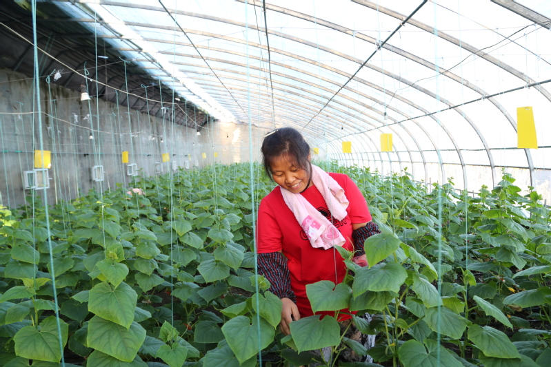 走進(jìn)崗埠富民農(nóng)業(yè)科技園32號(hào)溫室大棚,滿眼盡是綠意,一排排整齊的秧苗長(zhǎng)勢(shì)旺盛,如青玉般細(xì)嫩的小黃瓜在翠綠的葉片襯托下,身著綠裝,格外誘人。連日來(lái),園區(qū)加強(qiáng)精細(xì)化管理,從消毒、栽種、水肥運(yùn)籌等流程上嚴(yán)格作業(yè),確保水果黃瓜果型優(yōu)良、綠色生態(tài)。圖為工人正在進(jìn)行“蘸花”作業(yè)。